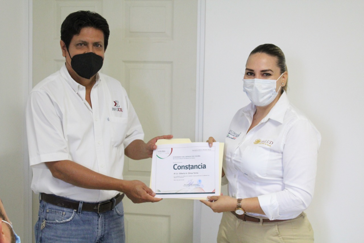 En este contexto se realizó una sesión de capacitación a personal que integra la Comisión Estatal de Salud Mental y Adicciones, por parte del secretario de Capacitación, Educación y Vinculación Ciudadana del Infocol, Gilberto Olmos Torres, en la que participó la titular de la Comisión, Eréndira Lizbeth Fernández Rivera.