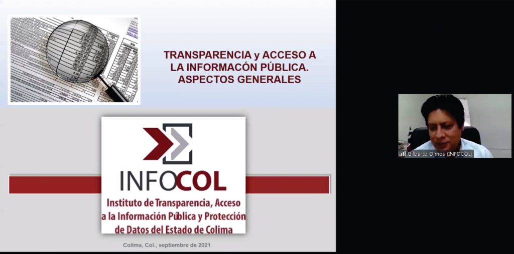 En esta ocasión el Secretario de Capacitación, Educación y Vinculación Ciudadana del Instituto de Transparencia , Acceso a la Información Pública y Protección de Datos del Estado de Colima (Infocol) Gilberto Olmos Torres ofreció esta charla.