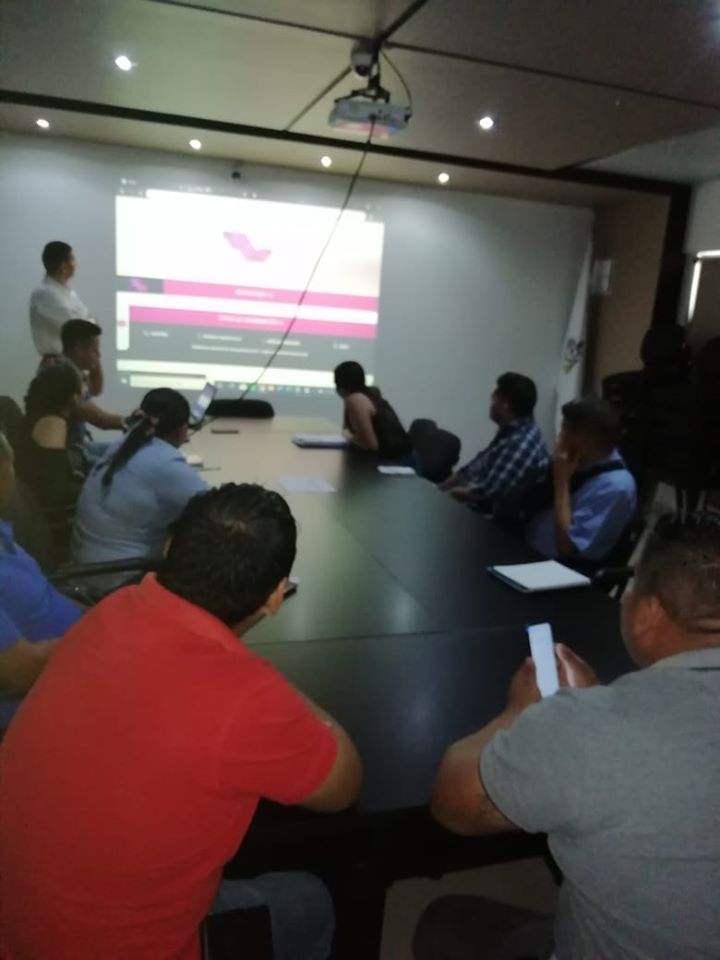 Aspecto del taller de capacitación en materia de Carga de Formatos del sistema de Portales de Transparencia, Sipot, a la Plataforma Nacional de Transparencia, impartido a funcionarios de las diferentes áreas administrativas del Ayuntamiento de Ixtlahuacán, por el Titular de Servicios Informáticos y Sistemas del Infocol, Joel Ibáñez Delgado. La actividad tuvo lugar en la Sala de Cabildo de la presidencia municipal.