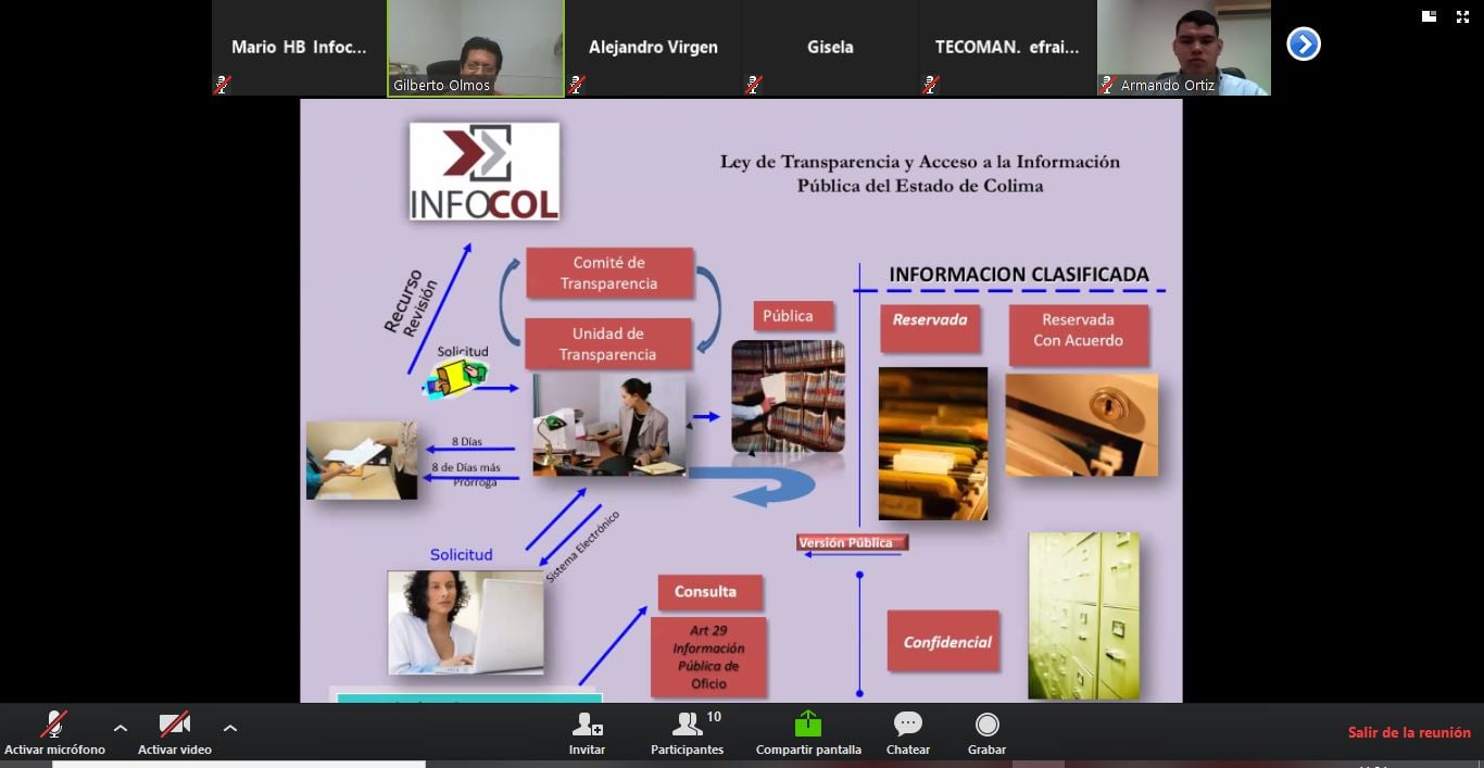 Estuvieron presentes la Lic. Gisela Del Carmen Torres Ruíz, del H. Ayuntamiento de Colima; Lic. María Luisa Fernández Silva y sus tres facilitadores; y Liliana Rogel Rivera, Facilitadora de ¿Cómo Vamos? Colima y Alejandro Virgen en representación de la titular de la unidad de transparencia del Ayuntamiento de Tecomán.