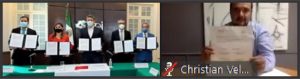 Los comisionados del Instituto de Transparencia, Acceso a la Información Pública y Protección de Datos del Estado de Colima (Infocol) Christian Velasco Milanés (presidente) y Francisco José Yáñez Centeno y Arvizu estuvieron presentes en el evento, donde los comisionados presidentes de los estados antes mencionados plasmaron la firma de este convenio y como testigos de honor estuvieron presentes el Comisionado Presidente Maestro Christian Velasco Milanés del Inai Francisco Javier Acuña Llamas y el Secretario de Educación del Estado de Jalisco Juan Carlos Flores Miramontes.