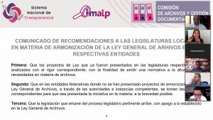 En el Marco de la Segunda Sesión Extraordinaria de la Comisión de Archivos y Gestión Documental del SNT se dio a conocer un comunicado de recomendaciones a las legislaturas locales en materia de Armonización de la Ley General de Archivos en las entidades del país.