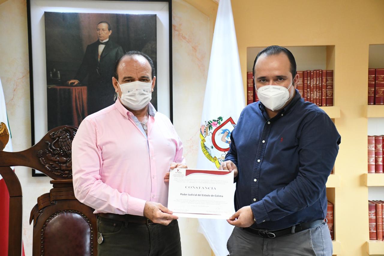 El Pleno del Instituto de Transparencia, Acceso a la Información Pública y Protección de Datos del Estado de Colima, entregó constancia al Poder judicial del Estado de Colima, por cumplir al 100 por ciento de carga de información en la plataforma nacional de transparencia y en su portal web, en el primer y segundo trimestres del 2020.