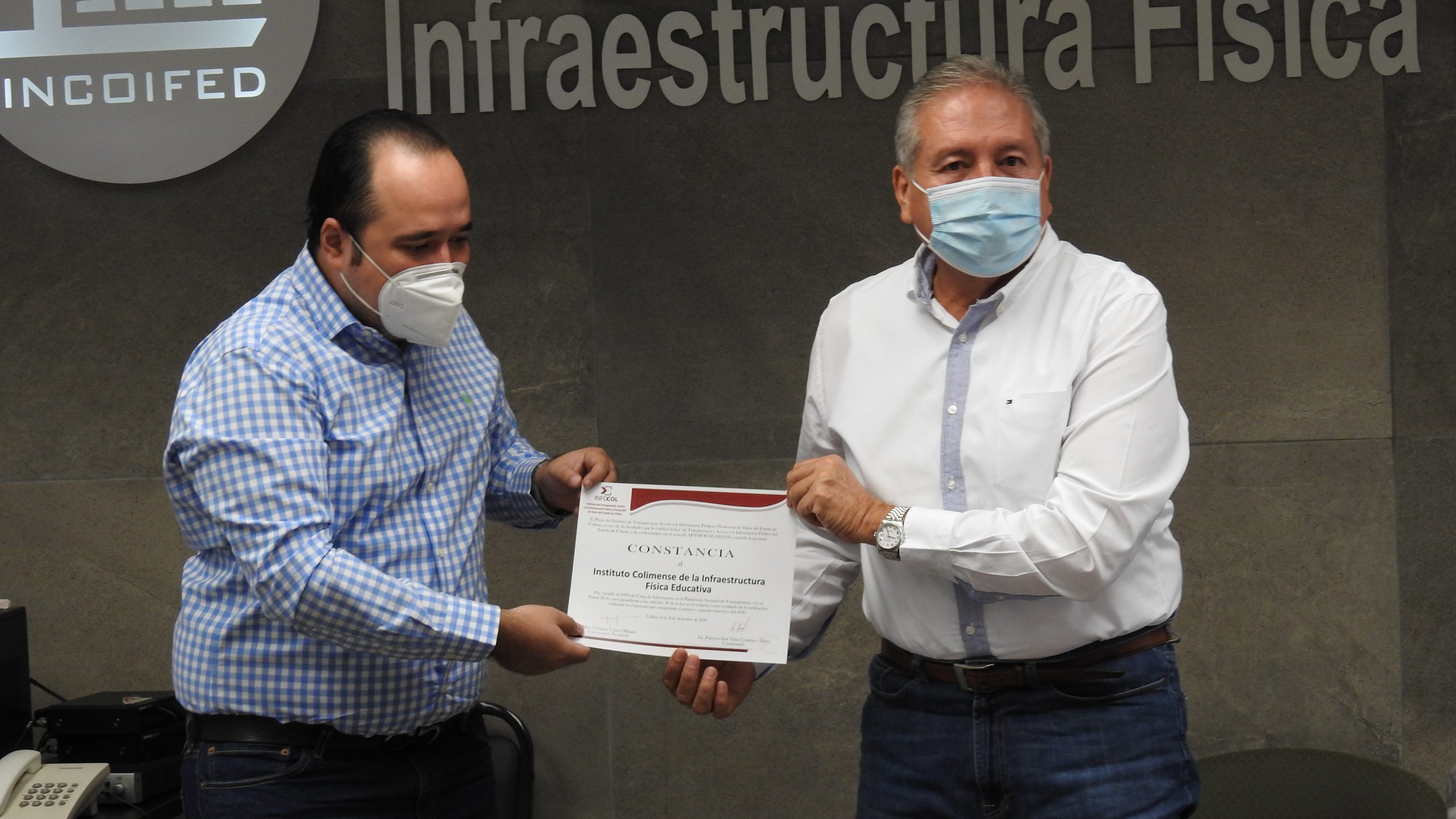 El Instituto de Transparencia, Acceso a la Información Pública y Protección de Datos del Estado de Colima (Infocol Infocol), a través de su comisionado Presidente, Christian Velasco Milanés, y el comisionado Francisco José Yáñez Centeno y Arvizu entregaron al Instituto Colimense de la Infraestructura Física Educativa (INCOIFED) una constancia de cumplimiento por cumplir al cien por ciento en la carga de información en la Plataforma Nacional de Transparencia y en su portal web, que corresponde al primer y segundo trimestre del 2020.
