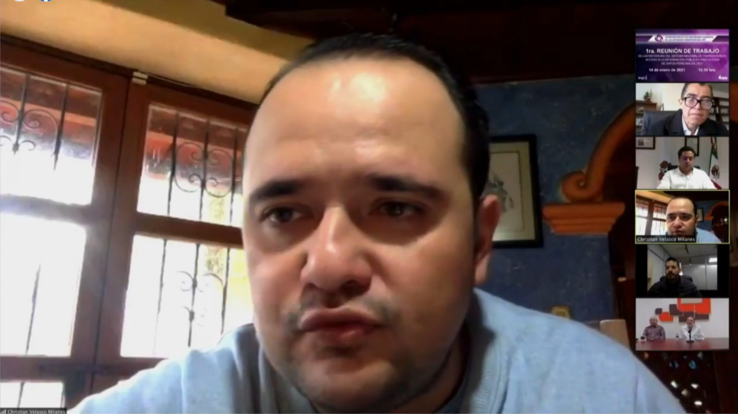 El comisionado presidente del Infocol Christian Velasco Milanés en su calidad de coordinador de la Comisión Jurídica, de Criterios y Resoluciones del @CONAIP_SNT, estuvo presente en la Primer Reunión de Trabajo de las Instancias del Sistema Nacional de Transparencia (SNT) en 2021. Donde se presentaron 4 ejes transversales para el trabajo a realizar del sistema en este 2021.