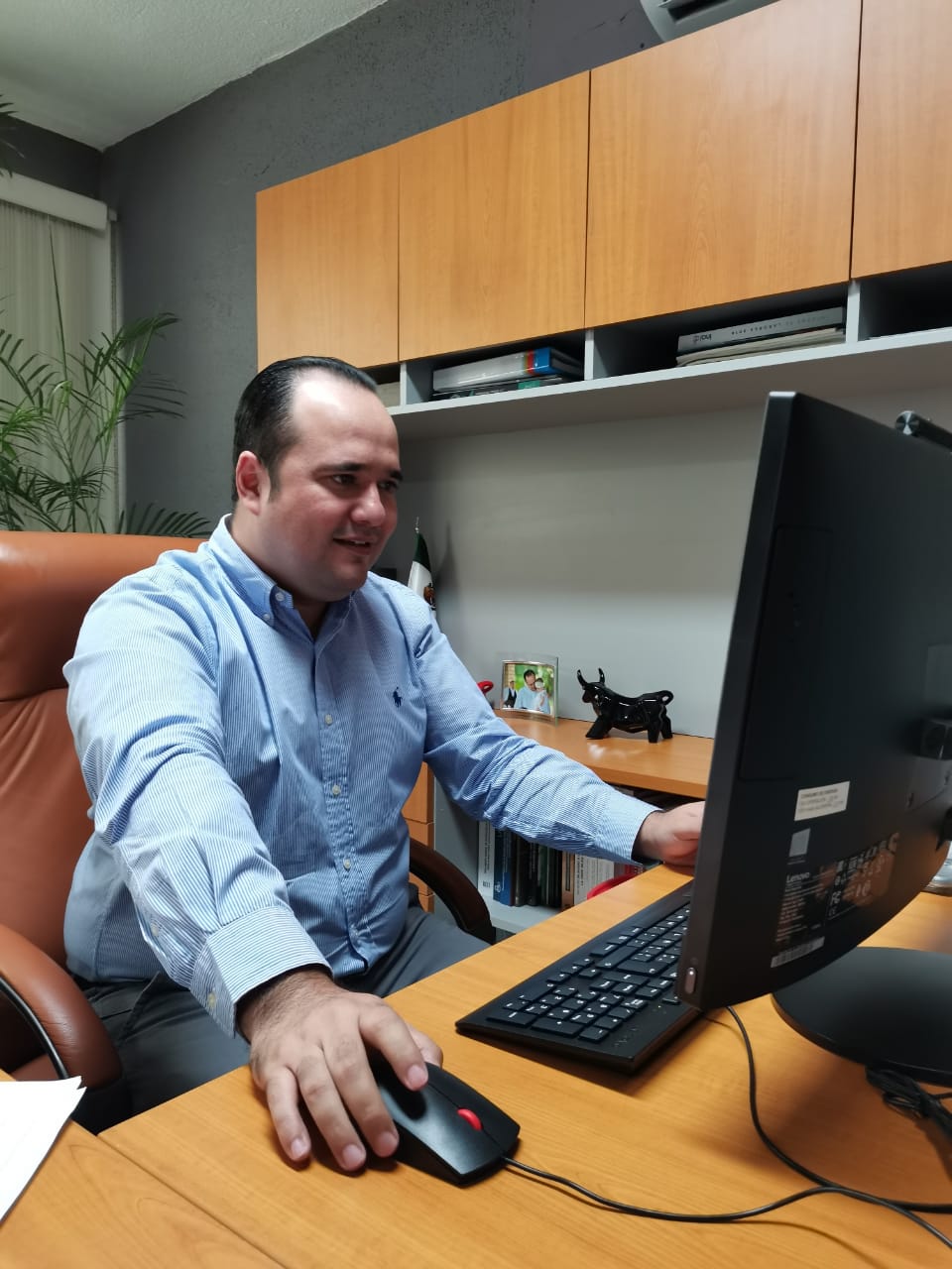 El comisionado presidente del Instituto de Transparencia, Acceso a la Información Pública y Protección de Datos del Estado de Colima (Infocol) Christian Velasco Milanés, presente en la primer sesión ordinaria vía virtual de la comisión de Archivos y Gestión Documental.
